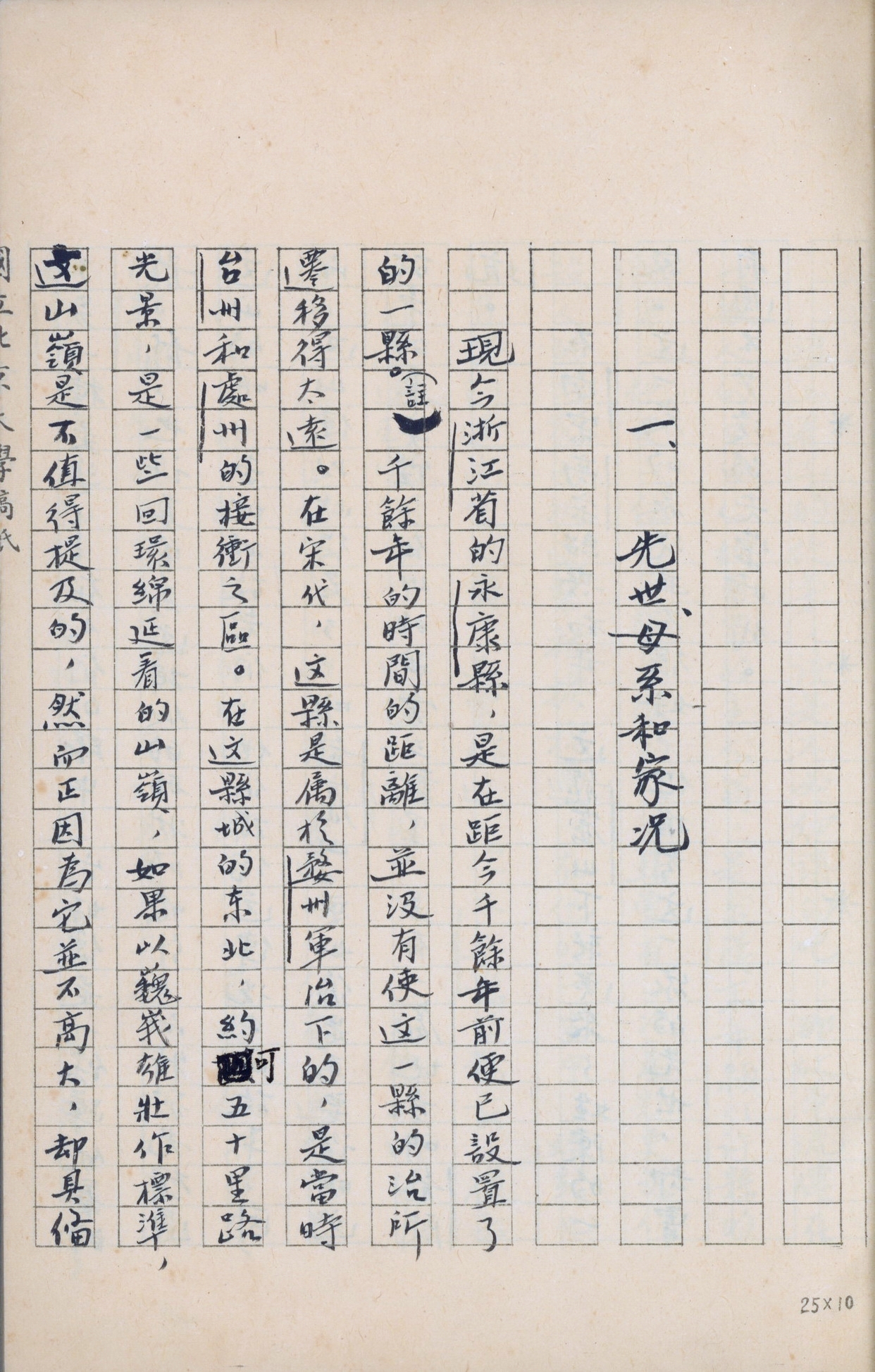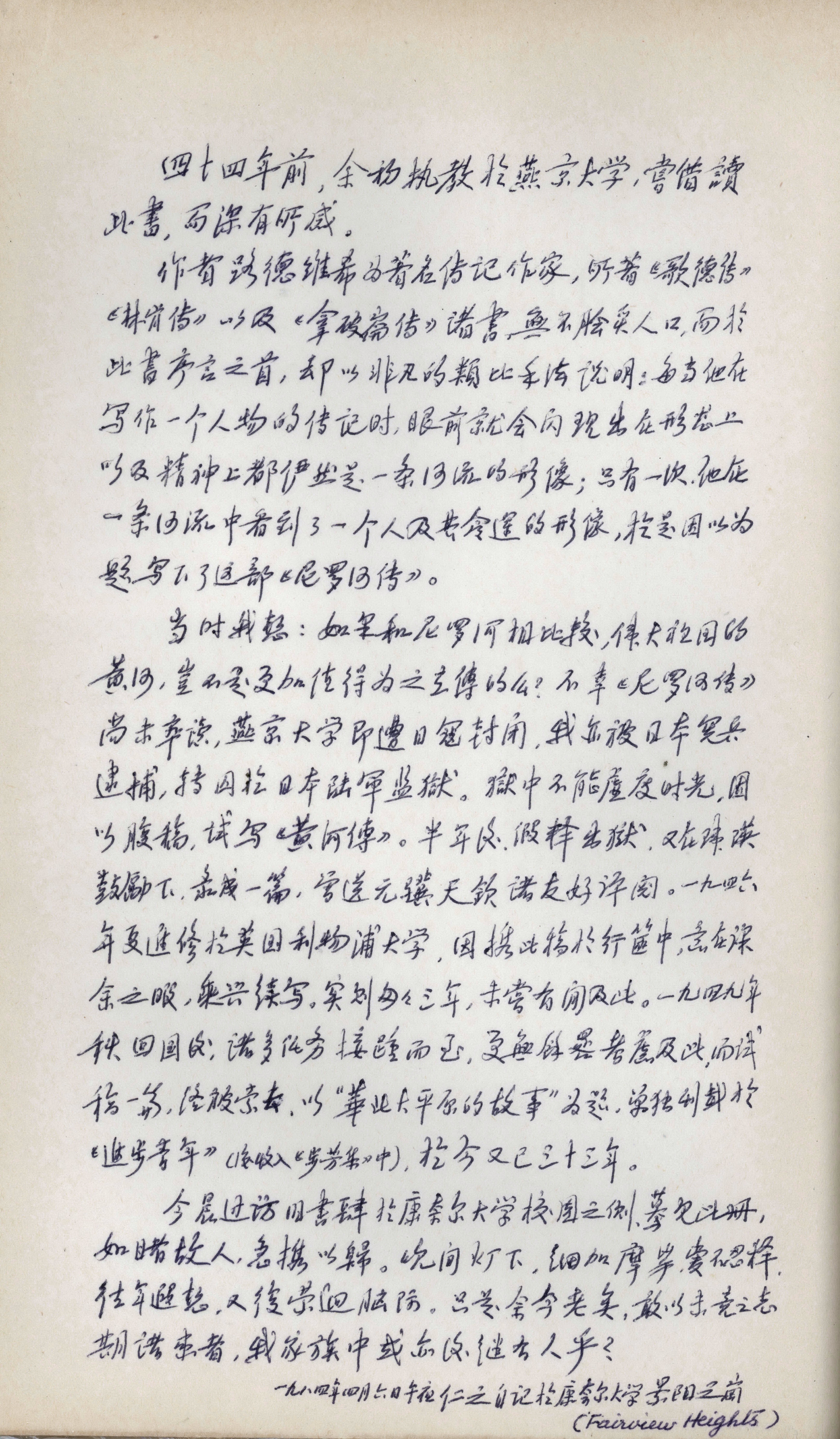 侯仁之《海淀园林区的开发与北京大学校园》手稿