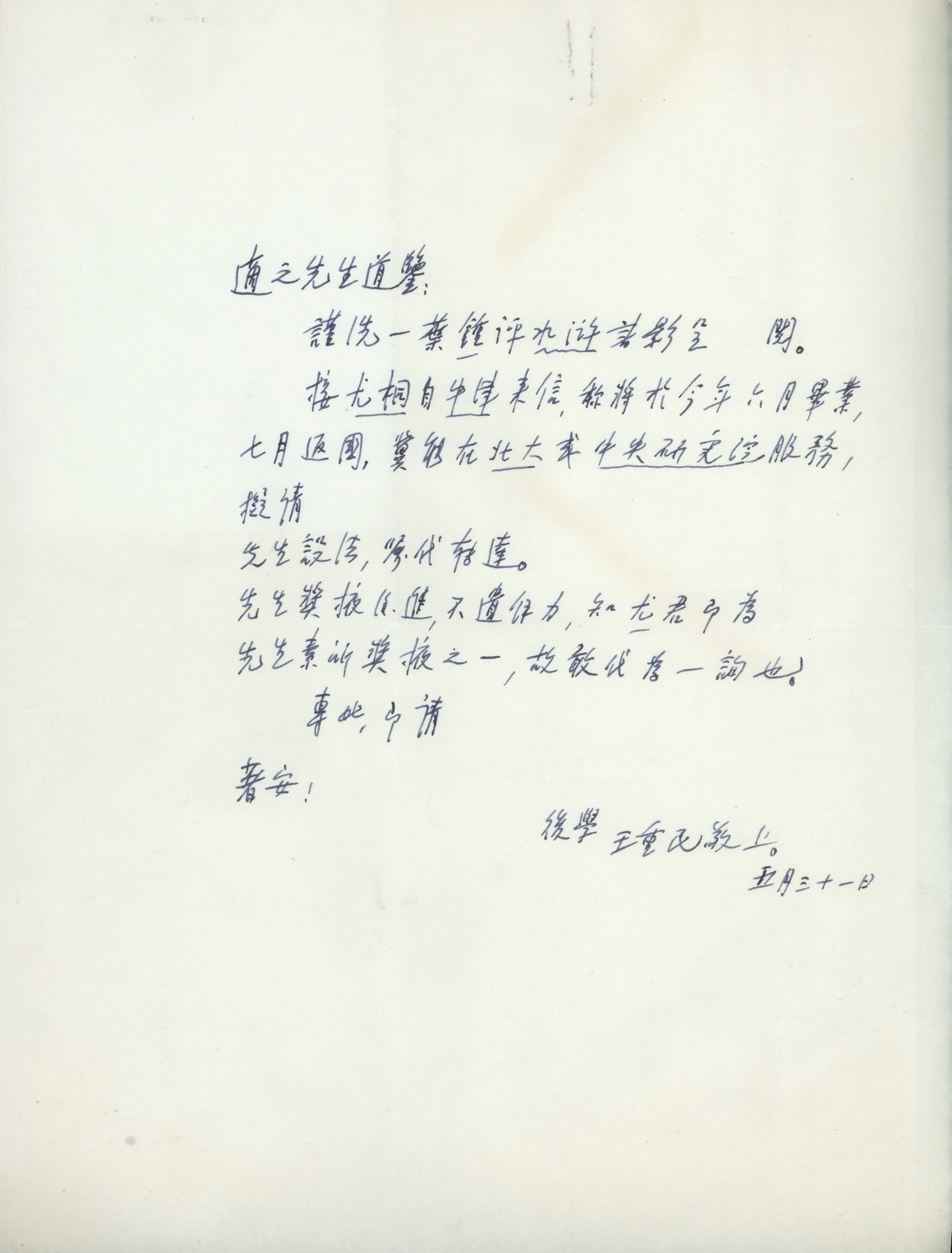 王重民1940年5月31日致胡适