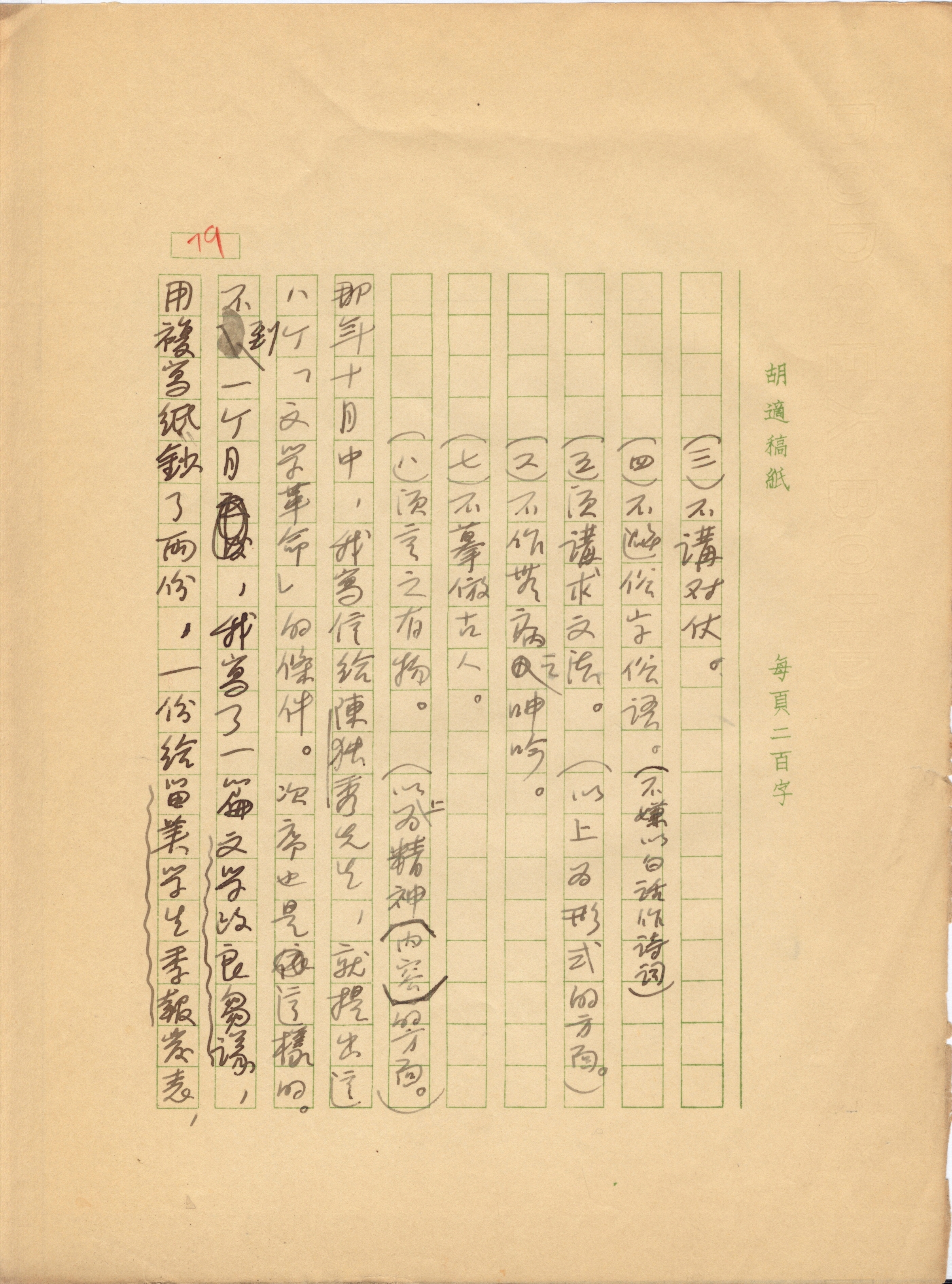 胡适《四十自述》手稿