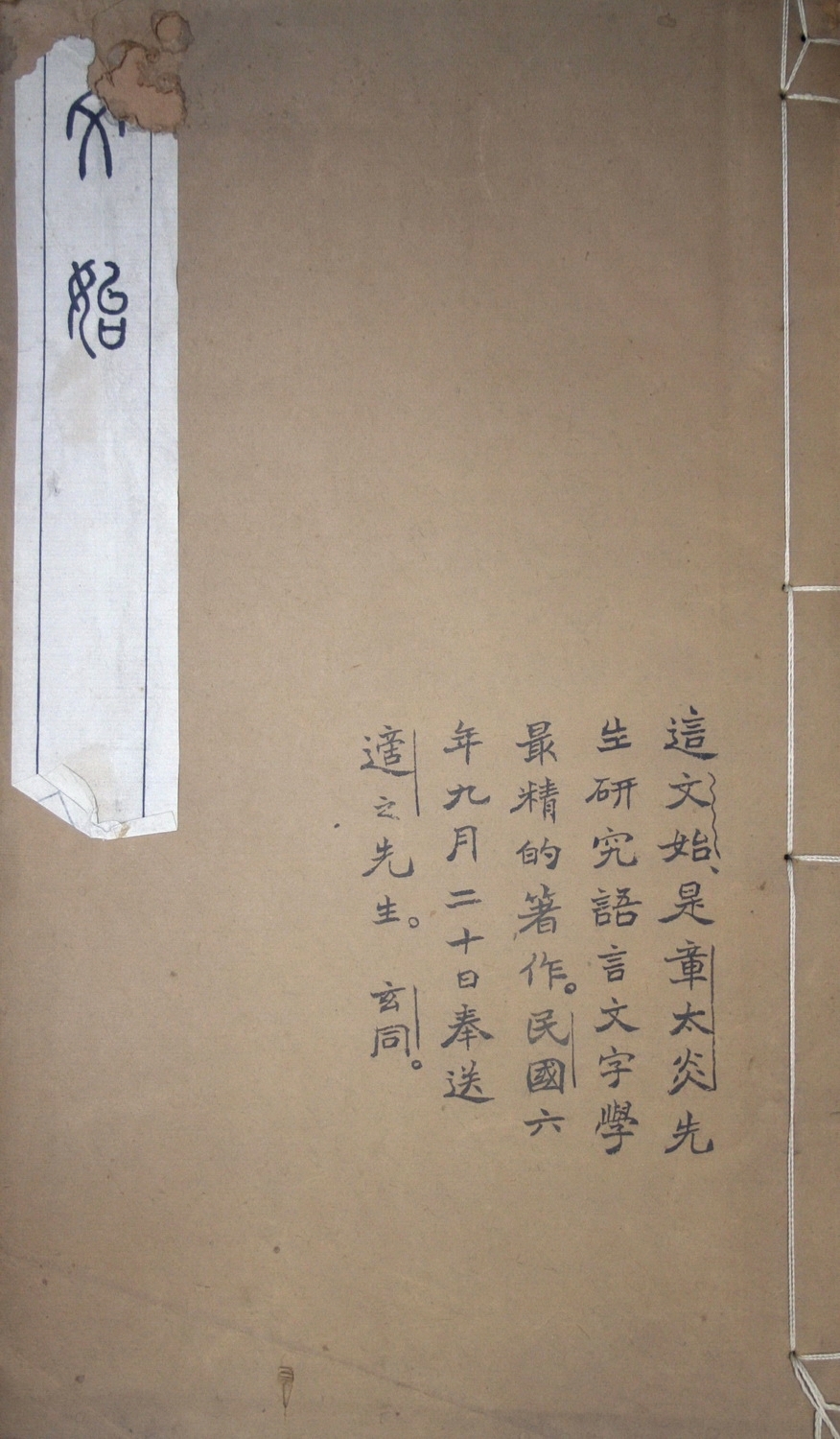 钱玄同1917年9月20日赠胡适《文始》