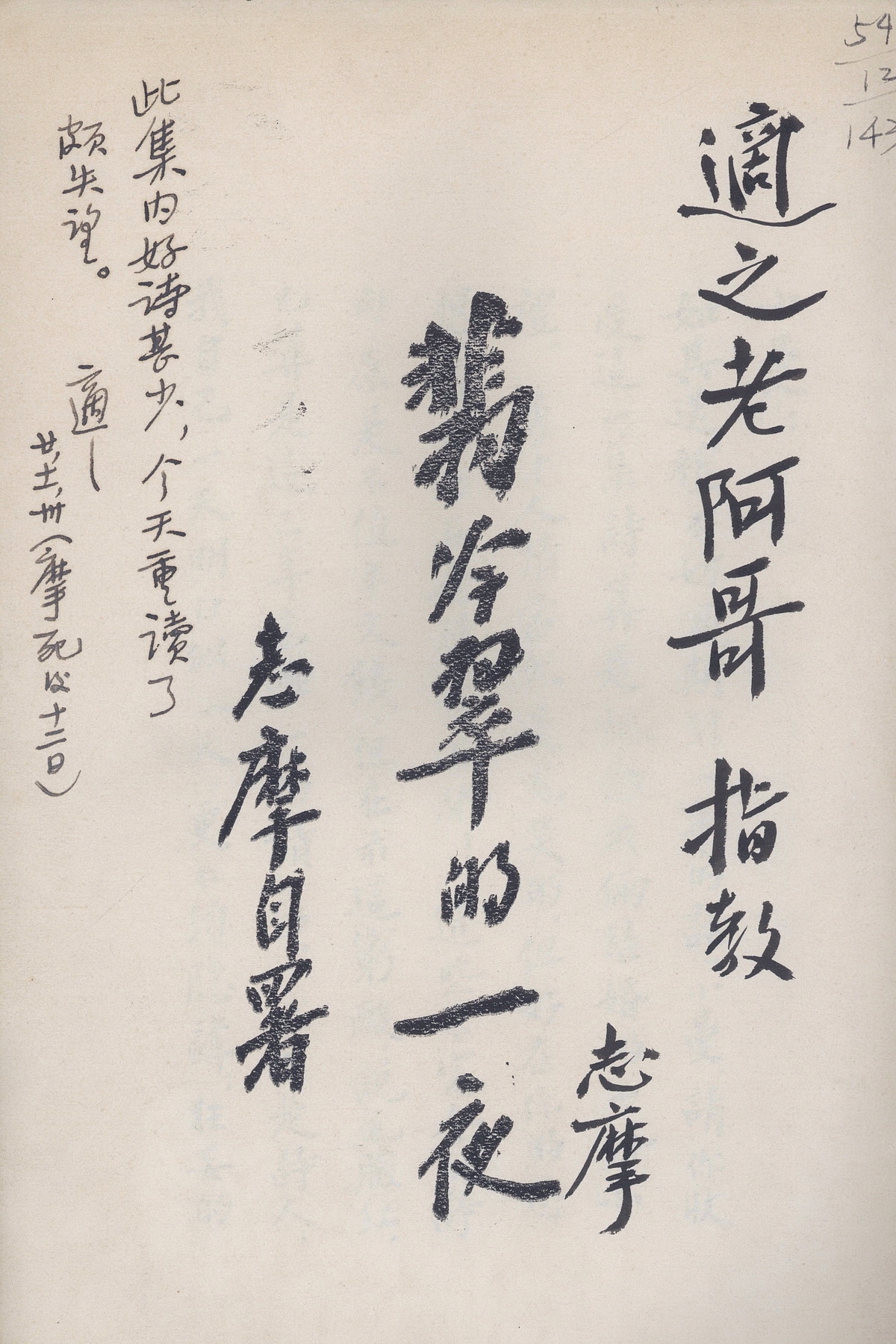 徐志摩赠胡适《翡冷翠的一夜》