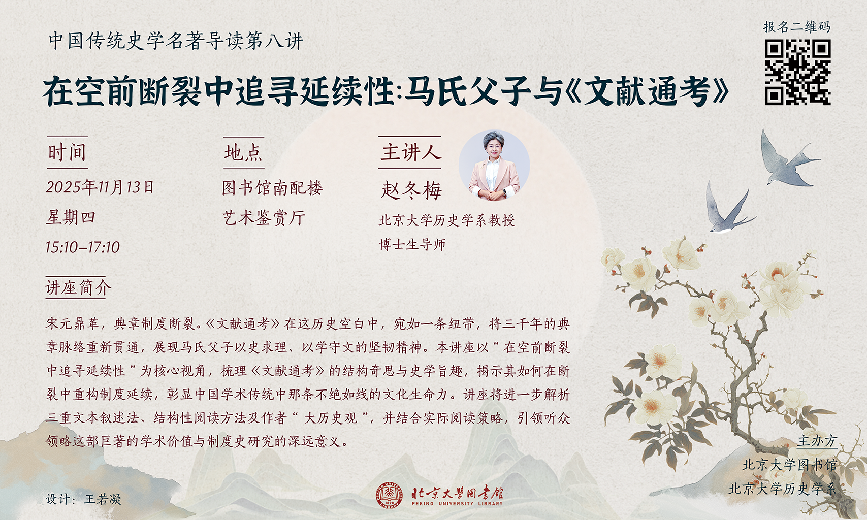 阅读文化节|赵冬梅讲座:“在空前断裂中追寻延续性:马氏父子与《文献通考》”