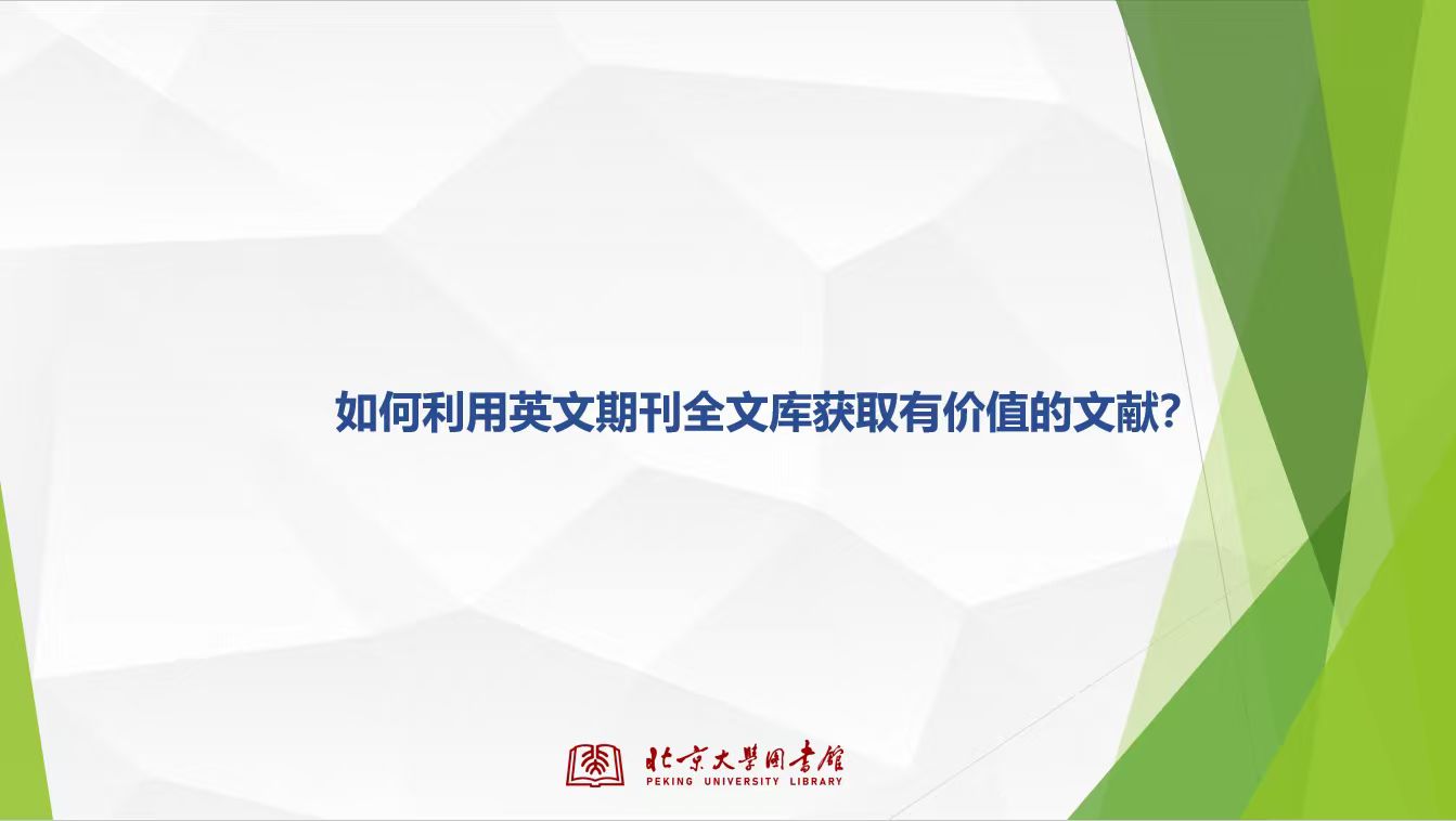 期刊论文是学术研究采用最多、应用最广泛的文献类型,全面准确地获取期刊论文将大大提高研究工作的效率。本讲座将概括介绍常用的外文电子期刊数据库及其检索方法,并以Elsevier数据库为例,介绍具体数据库的检索方法和注意事项。