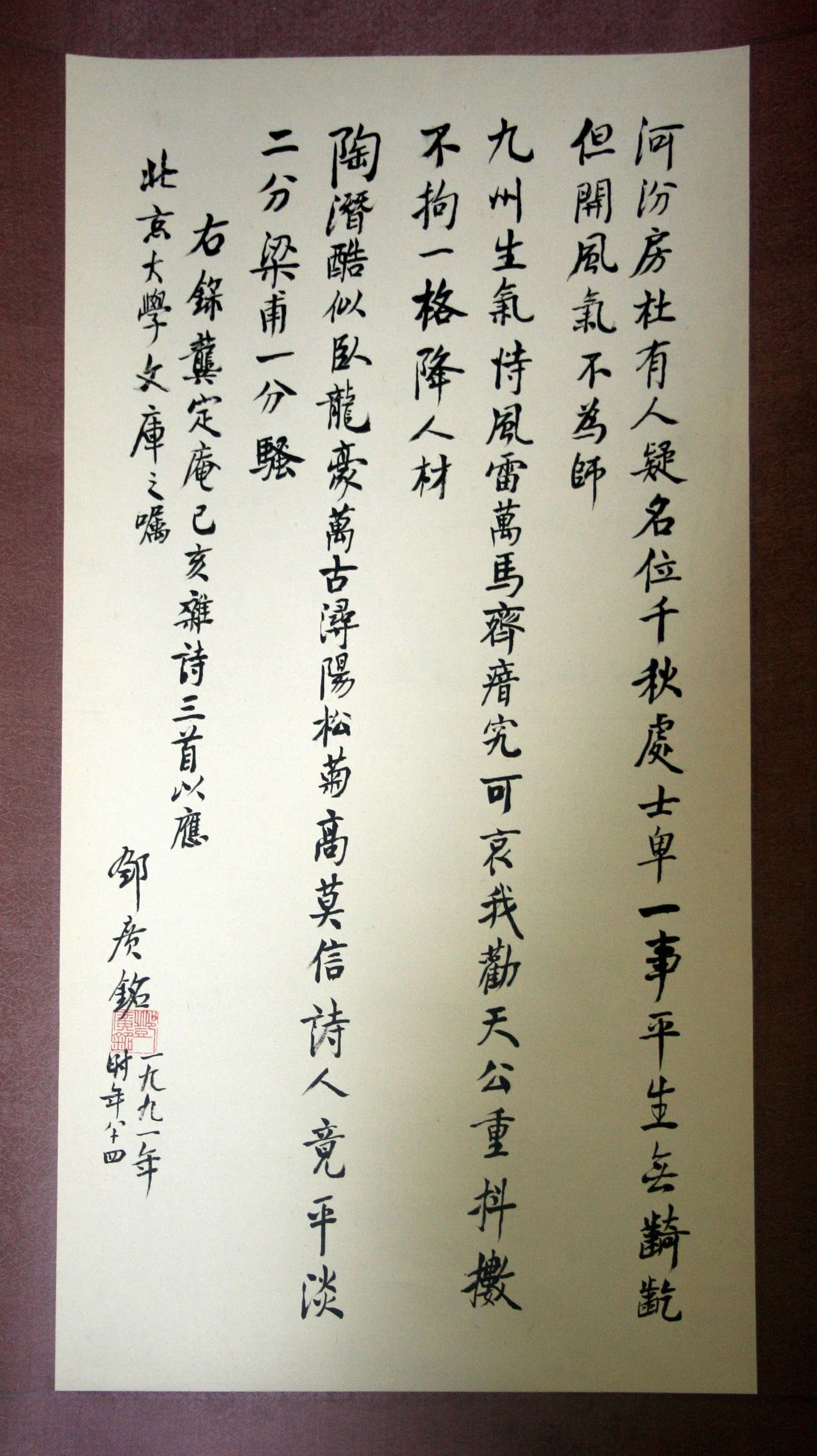 邓广铭书龚自珍《己亥杂诗》三首(1991年)