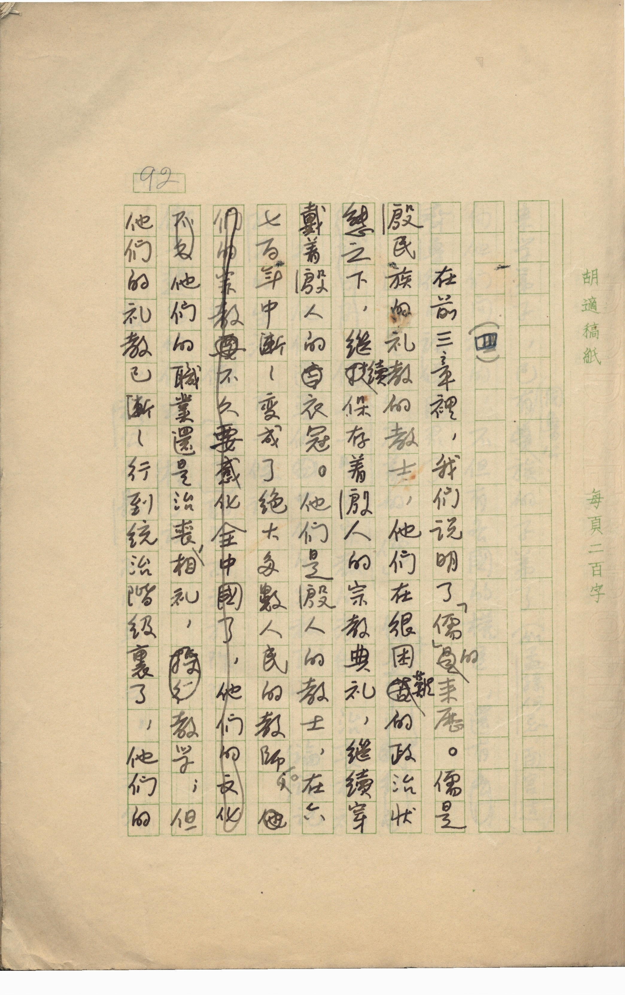 胡适《说儒》手稿