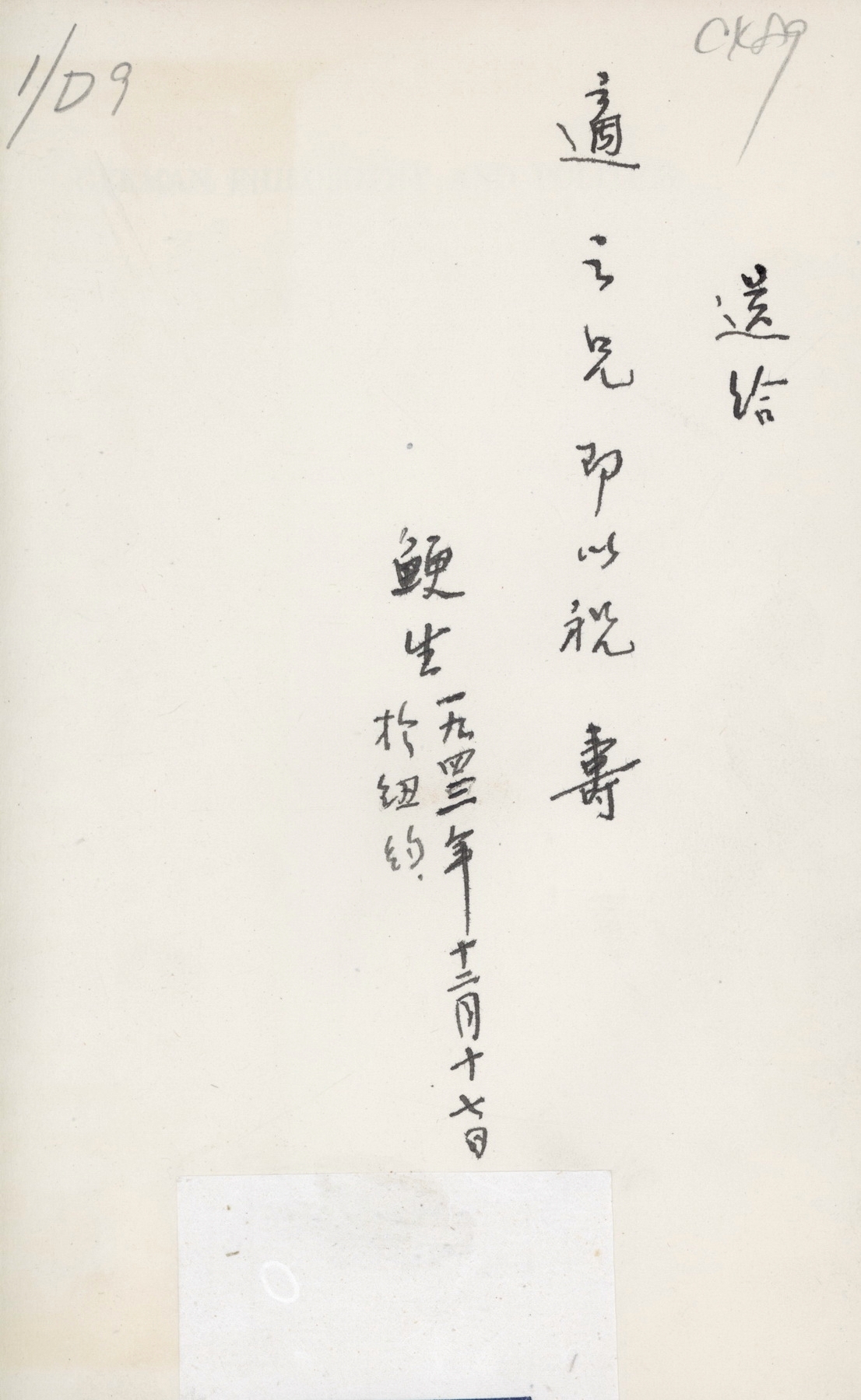 刘半农赠胡适《中国文法讲话》