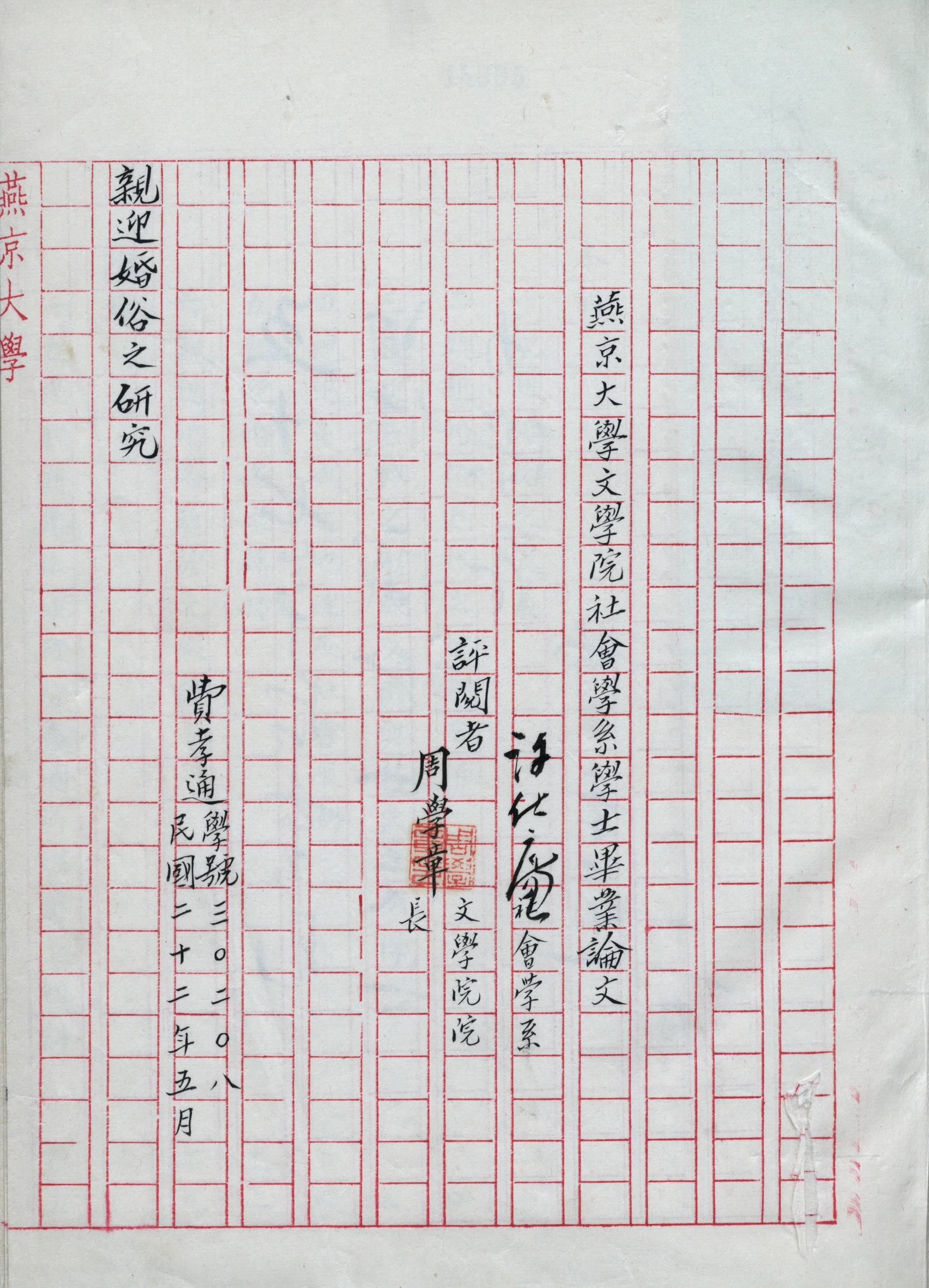 费孝通1933年燕京大学学士论文